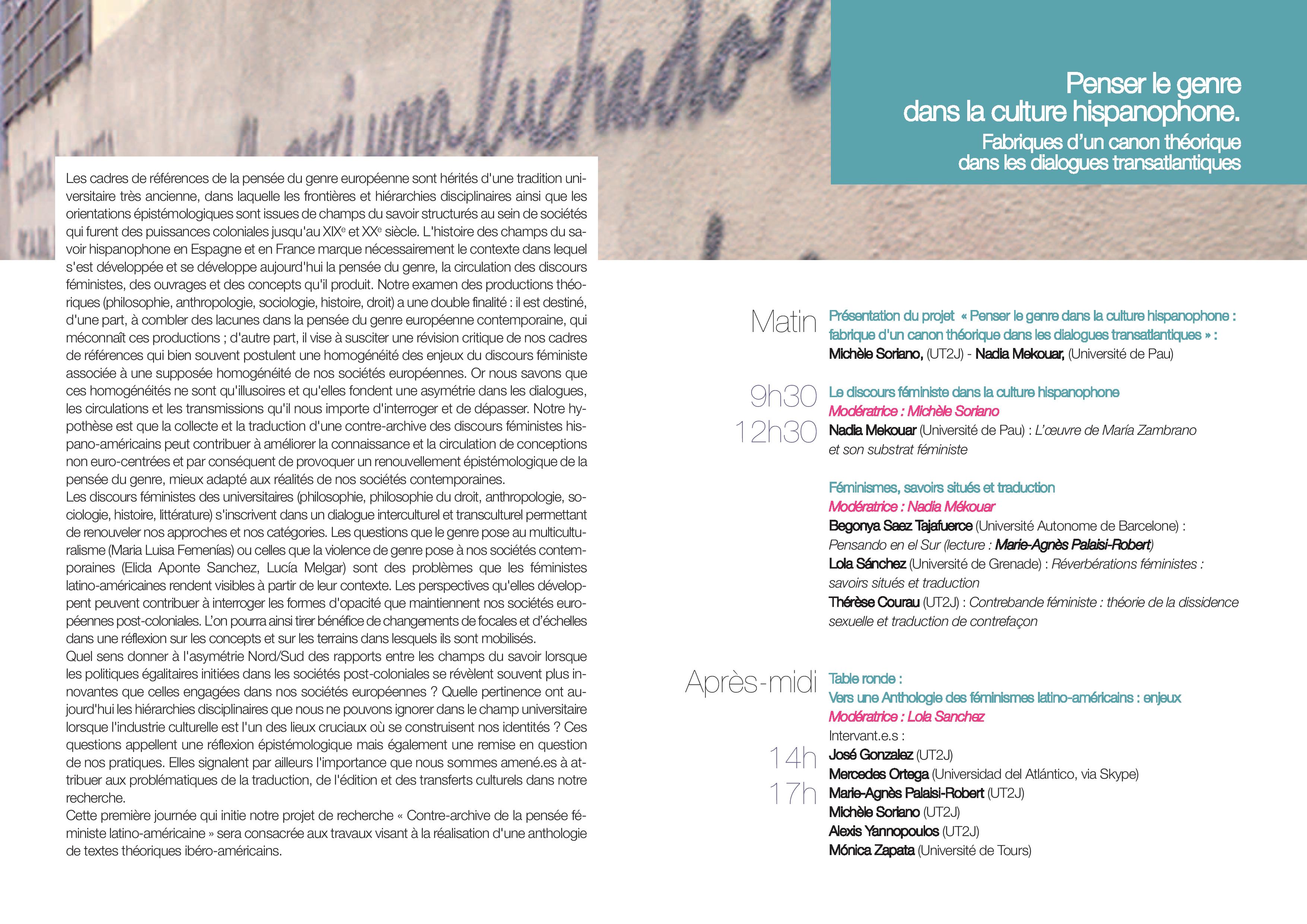 Journée d'étude"Penser le genre dans la culture hispanophone. Fabrique d'un canon théorique dans les dialogues transatlantiques"